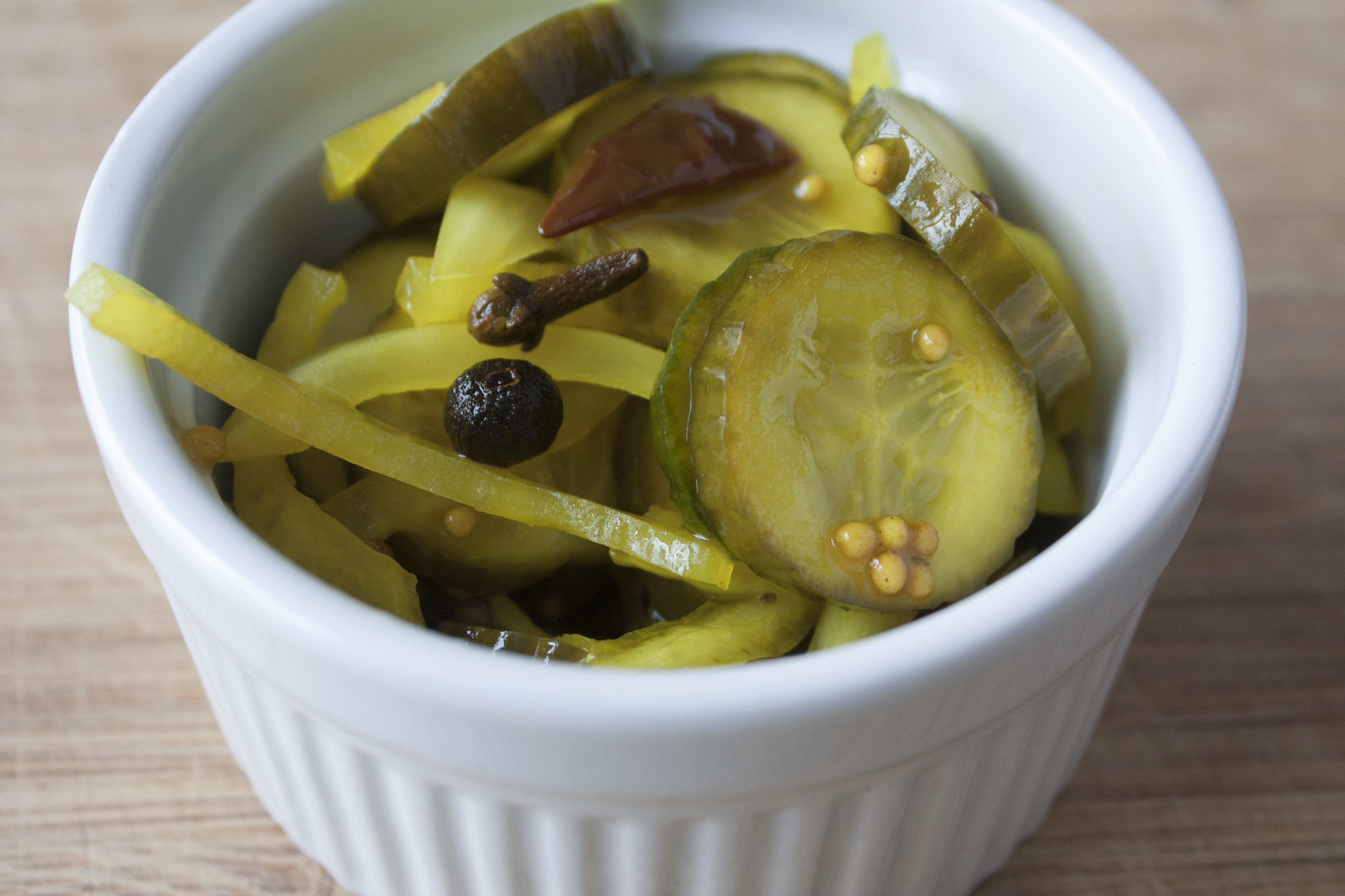 After a hard-fought contest and much deliberation by the two judges, the winner is…Recipe Girl’s bread and butter pickles! We love both recipes, but Recipes Girl’s pickles win out because of the great balance between sweet and savory. The best part is, we still have one whole Mason jar full of each kind to enjoy in the coming weeks!