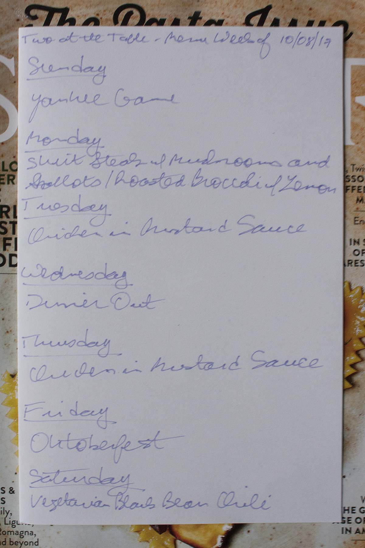 This Week’s Menu: Two at the Table Menu Week of October 8, 2017