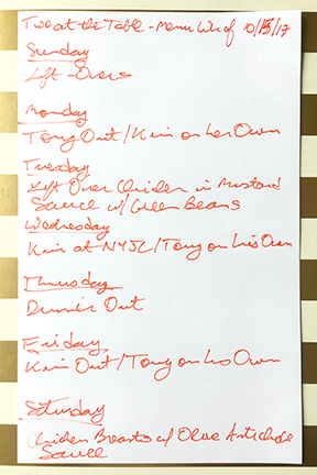 This Week’s Menu: Two at the Table Menu Week of Oct 15, 2017