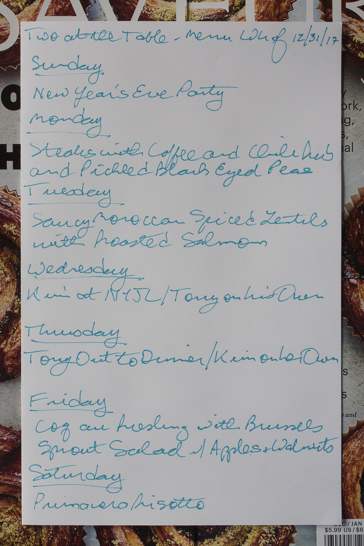 This Week’s Menu: Two at the Table Menu Week of Dec 31 2017